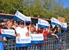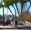 People from all over the Tampa Bay area trickled in to Pioneer Park on Monday afternoon, slowly filling the grassy bandstand area to see Republican presidential candidate Mitt Romney. The warm sun did not deter people from camping on chairs to get a front row seat for the rally.