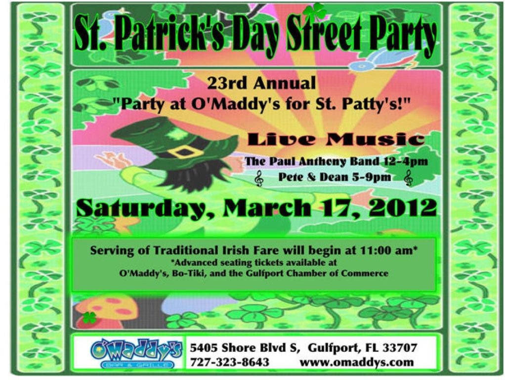 This 23rd annual party features a serving of traditional Irish food beginning at 11am, plus music by the Paul Anthony Band from 12pm to 4pm and music by Pete & Dean from 5pm to 9pm.
