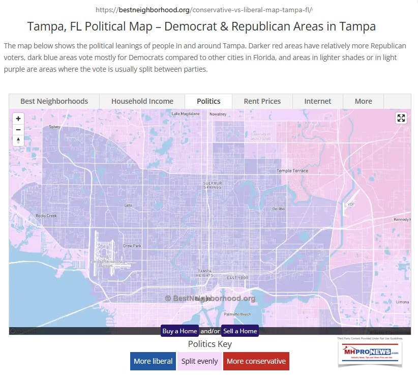 According to BestNeighborhood.org, much of Tampa is Democratic (in their jargon, liberal).