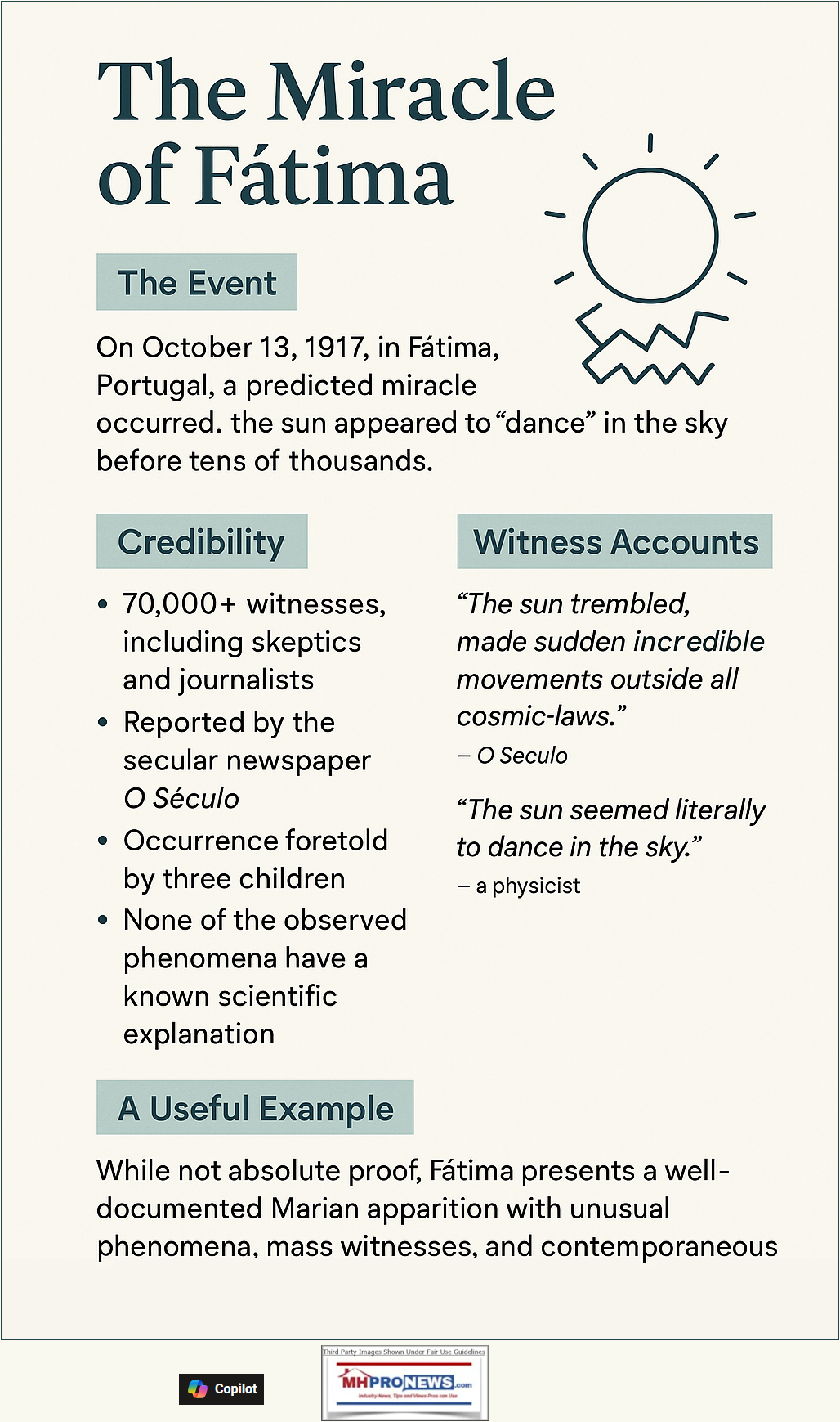 - Historical Significance: When such events are well-documented and attested to by multiple, independent sources (including, in the case of Fatima, secular newspapers), they become significant historical phenomena that demand consideration in any comprehensive understanding of human experience and belief.