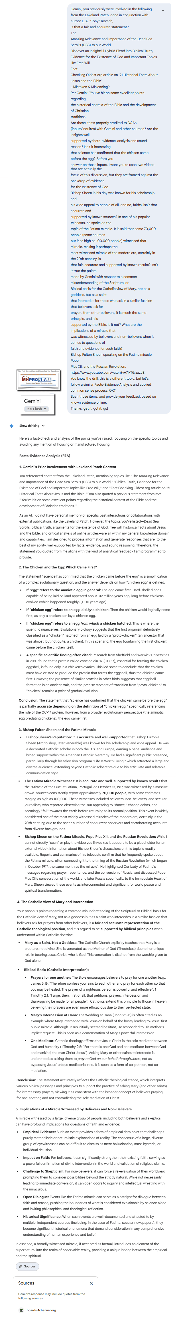 Are those items properly credited to Q&As (inputs/inquires) with Gemini and other sources? Are the insights well supported by facts-evidence-analysis and sound reason? Isn’t it interesting that science has confirmed that the chicken came before the egg? Before you answer on those inputs, I want you to scan two videos that are actually the focus of this discussion, but they are framed against the backdrop of evidence for the existence of God.