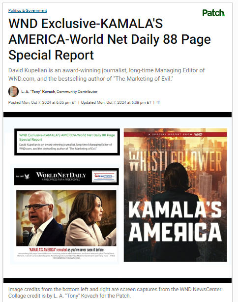 For those who want a deep dive into the evidence on Kamala Harris' history, consider what World Net Daily (WND.com) award-winning journalist and editor David Kupelian had to say along with others who contributed to their special report.