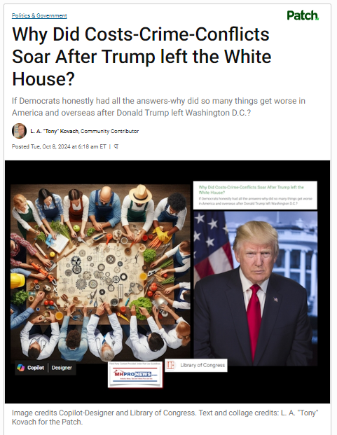 To see more insights by this author and sources sited that span the left-right media divide, see the linked and related reports that follow. There is a clear choice between a prior president - Trump - who provided lower costs of living, more affordable housing, lower interest rates, lower inflation, lower utilities, lower fuel costs and more money left in millions of American's pockets and bank accounts. Or there is the Harris-Biden (D) years of more crime, more wars, and higher costs. So remember: it is time to Swamp the Vote. As a political independent, I'm urging my neighbors to vote wisely, and vote early. ##