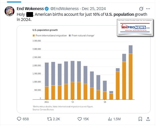 One of the only reasons the population in the U.S. is still growing is because of immigration. Since Jan. 2021, the overall population has grown by 9.3 million to 341 million. 7.35 million of that was an increase in the foreign-born population to 50 million. Put another way, the native-born population of the United States is only growing on a net basis by about 500,000 a year — and soon it will be declining outright as the Baby Boomers sadly pass away.