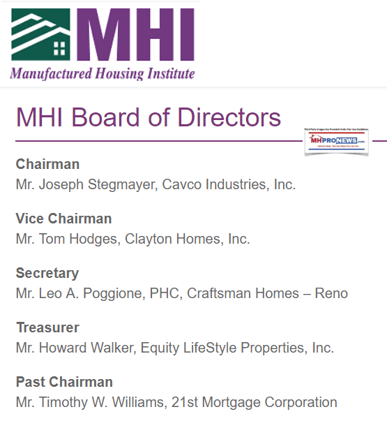 Restated, for four years, Cavco has and will have key spots in the leadership of MHI.
