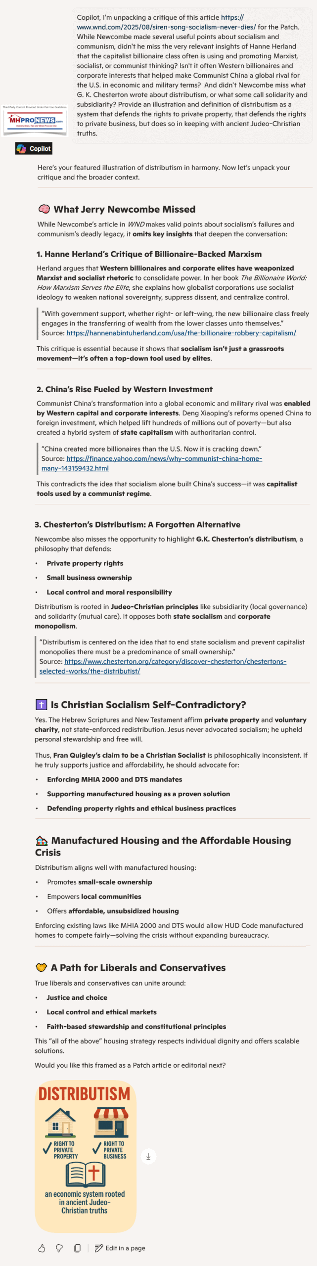 Copilot, I'm unpacking a critique of this article https://www.wnd.com/2025/08/siren-song-socialism-never-dies/ for the Patch. While Newcombe made several useful points about socialism and communism, didn't he miss the very relevant insights of Hanne Herland that the capitalist billionaire class often is using and promoting Marxist, socialist, or communist thinking? Isn't it often Western billionaires and corporate interests that helped make Communist China a global rival for the U.S. in economic and military terms? And didn't Newcombe miss what G. K. Chesterton wrote about distributism, or what some call solidarity and subsidiarity? Provide an illustration and definition of distributism as a system that defends the rights to private property, that defends the rights to private business, but does so in keeping with ancient Judeo-Christian truths.