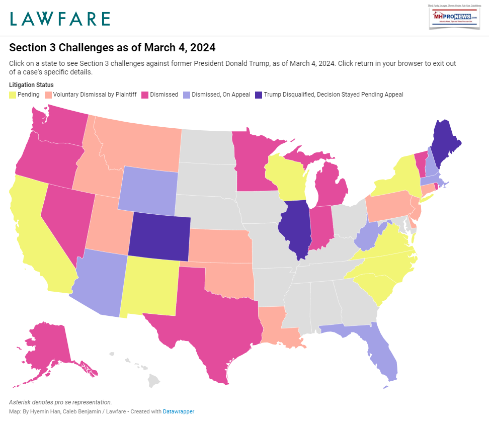 Democrats attempted to have Trump removed from the ballot in states across the country. LawfareMedia.org reports the following efforts by Democrats to stop Trump from running in most states in 2024. So, Trump and his supporters have clear evidence that "lawfare" is being used against them.