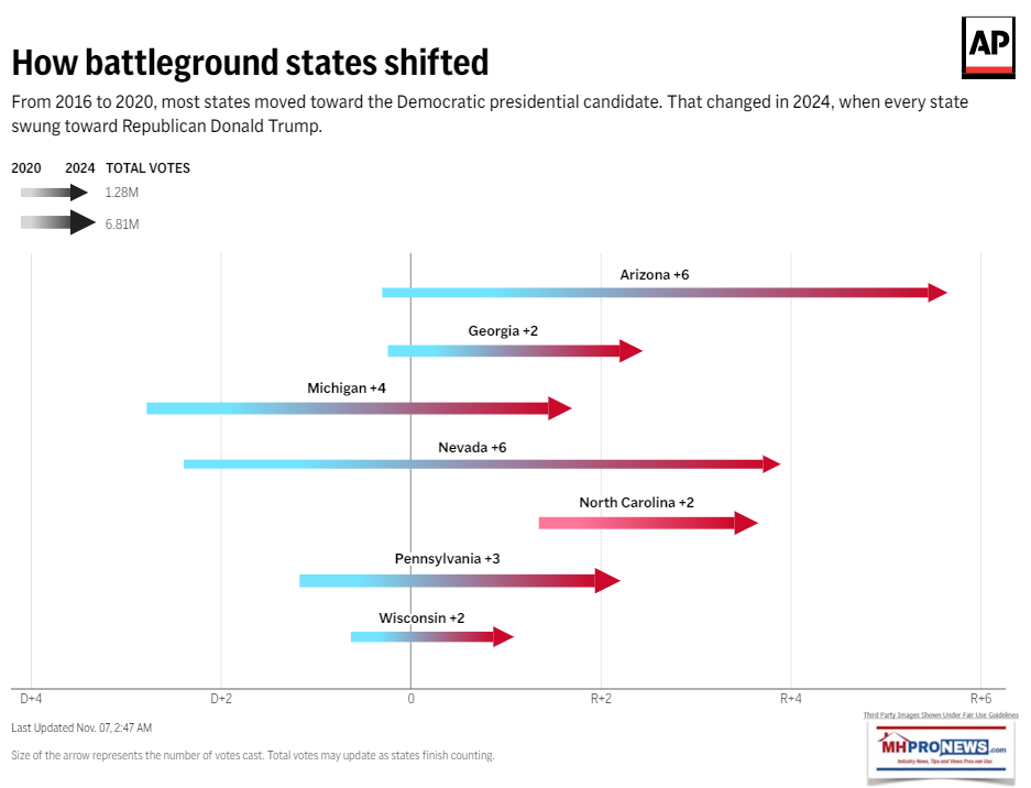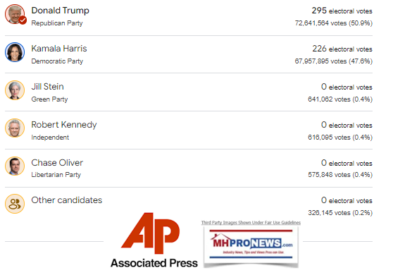 But before we dive into all that, let’s update the known post-election data as of this morning. The sources, such as Breitbart News, are as shown on each image. The Associated Press (AP) is rated as left-leaning by Sharyl Attkisson and others, Breitbart as right-leaning. Meaning, AP tends to favor Democrats and Breitbart is more open to the views of Republicans (a.k.a.: Grand Old Party or GOP).