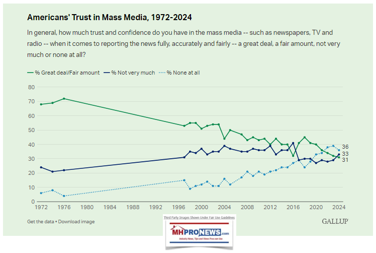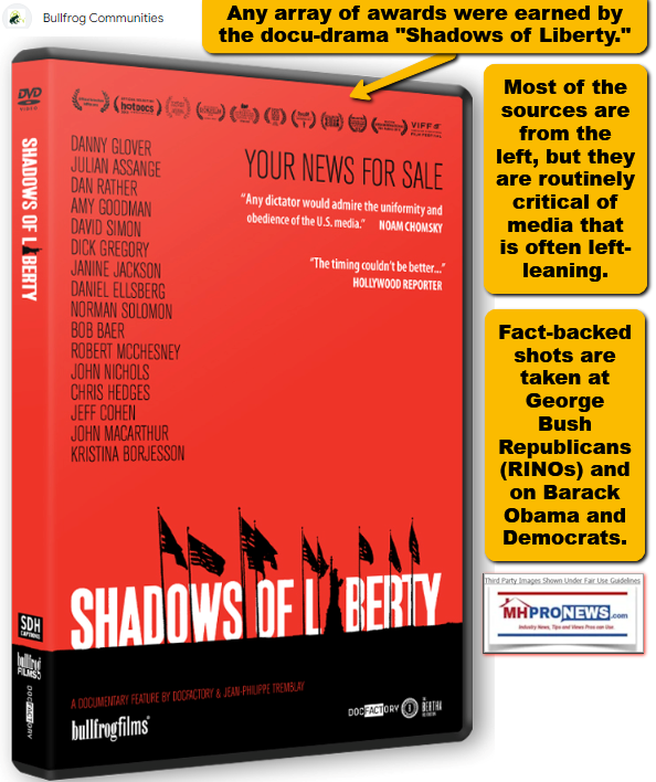 Via our largest publication, MHProNews, we opened our reporting in 2024 with an in depth look at the historic, multiple-award winning, and still relevant documentary drama Shadows of Liberty. That report linked below is unique online in that it has the full length video (it has an abbreviated and arguably not as good) version of the original production that won the awards. It also has an annotated transcript with commentary. What that means is that viewers and readers can assess its insights and value. Shadows of Liberty explains how much of the media is a business. The owners of the media thus have financial motivations to report, or not report, based in part on their own interests.