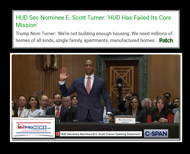 5) This writer for Manufactured Home Pro News and contributor to this Patch provided the following insights into the POTUS Trump-nominee for HUD Secretary, E. Scott Turner. If Americans want more affordable housing, what follows is imperative. Hopefully, per reports that Turner is soon-to-be confirmed HUD Secretary is already thinking like this, as he said 'We need millions of homes of all kinds, single family, apartments, manufactured homes.' Because we "Can't Solve the U.S. Affordable Housing Crisis Without Factory-Built Homes" as sources with the National Association of Home Builders (NAHB) and others in or beyond manufactured housing have said that conventional housing alone can't meet the needs or price points necessary.