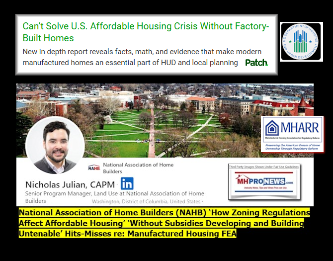 6) It is unclear if formal probes of all the purported corruption of the past years will be properly investigated or not. But if so, to better grasp the problems and potential within the manufactured home industry, the reports that follow about insights from the Manufactured Housing Association for Regulatory Reform (MHARR) and the Manufactured Housing Institute (MHI) presents useful facts, evidence, and analysis.