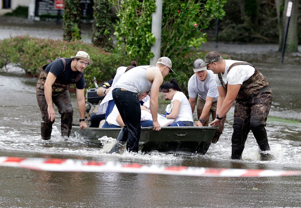 A patient is evacuated by boat from the St. Vincent's Medical Center after floodwaters from Hurricane Irma covered the first floor of the hospital in Jacksonville, Fla. Monday, Sept. 11, 2017, (AP Photo/John Raoux)