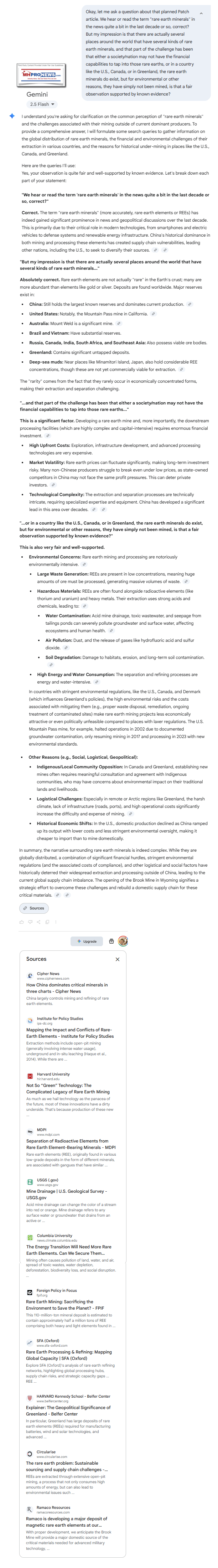 Okay, let me ask a question about that planned Patch article. We hear or read the term "rare earth minerals" in the news quite a bit in the last decade or so, correct? But my impression is that there are actually several places around the world that have several kinds of rare earth minerals, and that part of the challenge has been that either a society/nation may not have the financial capabilities to tap into those rare earths, or in a country like the U.S., Canada, or in Greenland, the rare earth minerals do exist, but for environmental or other reasons, they have simply not been mined, is that a fair observation supported by known evidence?
