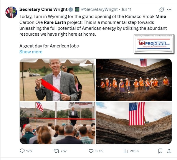 Secretary Chris Wright said the following: "Today, I am in Wyoming for the grand opening of the Ramaco Brook Mine Carbon Ore Rare Earth project! This is a monumental step towards unleashing the full potential of American energy by utilizing the abundant resources we have right here at home. A great day for American jobs." Wright is the: "17th United States Secretary of @ENERGY" or Department of Energy (DOE). That will tee up this post from U.S. Senator John Barrasso (WY-R) on the same topic in Part I.