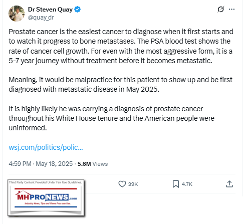 “The PSA blood test shows the rate of cancer cell growth. For even with the most aggressive form, it is a 5-7 year journey without treatment before it becomes metastatic,” Quay noted. “Meaning, it would be malpractice for this patient to show up and be first diagnosed with metastatic disease in May 2025.”