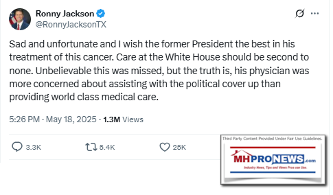 “Sad and unfortunate and I wish the former president the best in his treatment of this cancer,” Jackson posted on X. “Care at the White House should be second to none.”