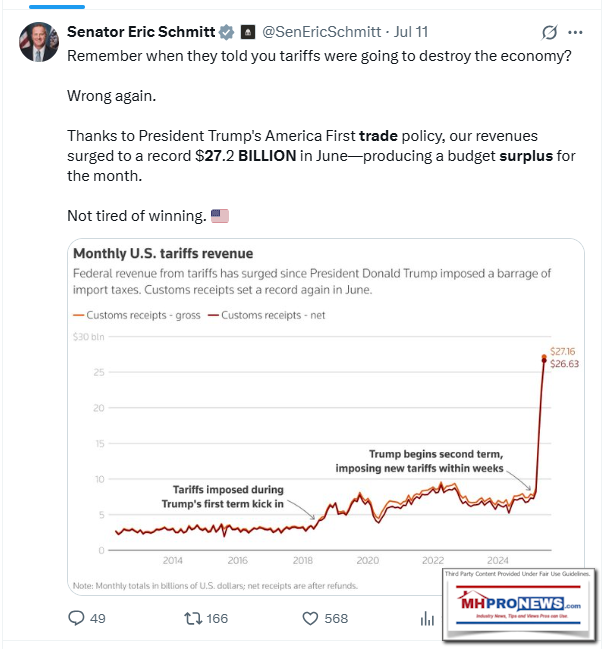 In fact, the U.S. Department of the Treasury last week said that revenue from the tariffs helped the federal government show a $27 billion surplus in June, The Center Square reported.