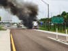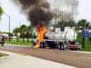 According to the Florida Highway Patrol, the truck experienced a mechanical issue and a fire broke out. The driver was able to escape the flames without injury.