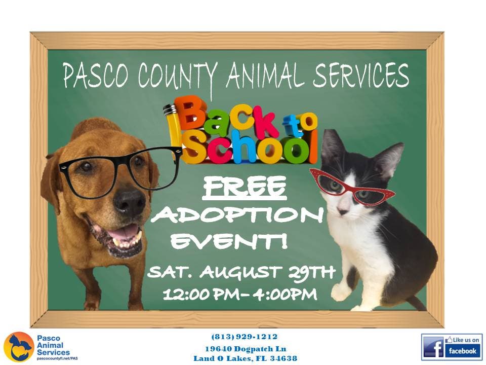 Pasco Country residents hoping to kick off the new school year with a new furry family member are in luck. Dogs and cats are free this week at Animal Services.