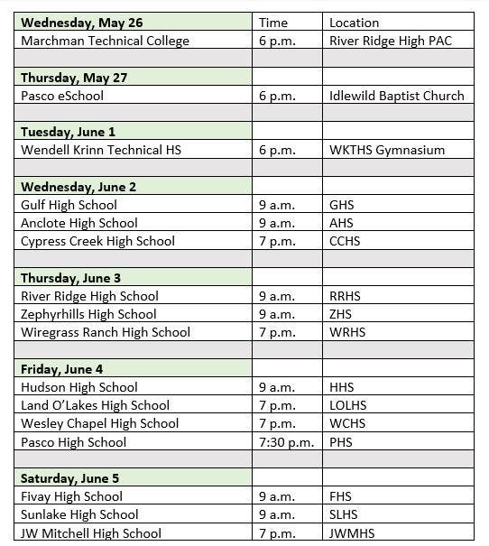The ceremonies will be similar to the in-person events held for Pasco graduates last year, with some significant differences.