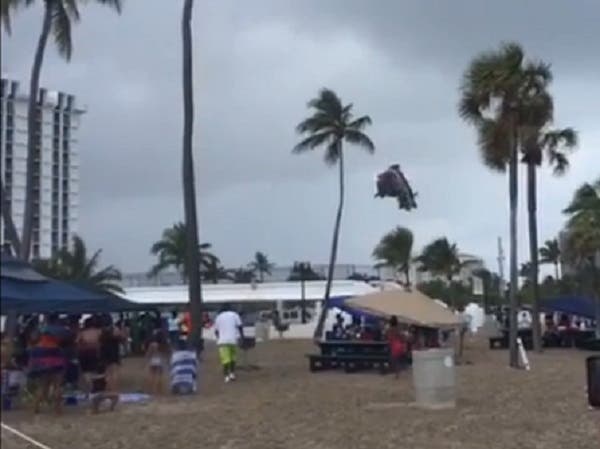 Beachside bounce house sent airborne as stunned onlookers watched.