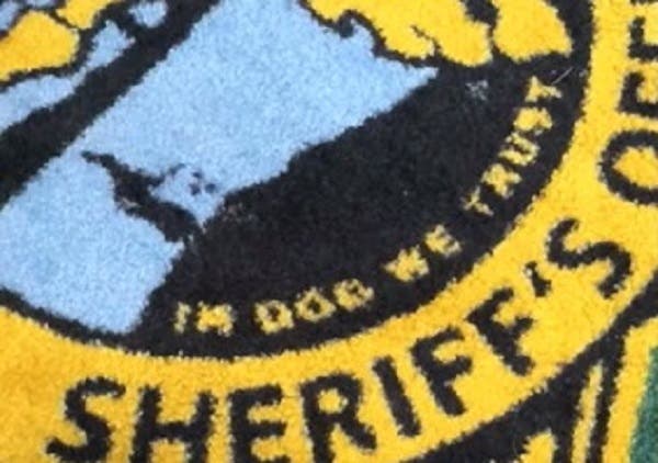 That’s according to the agency following Wednesday’s discovery of an interesting typo emblazoned on one of two area rugs displaying the sheriff’s office logo. Imprinted in the sheriff’s star were the words “In Dog We Trust” instead of “In God We Trust.”
