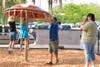 After the ribbon-cutting ceremony kids were allowed to roam the playground to their heartβs content. City volunteers shot tee shirts out of a cannon into the field. Kids were awarded for the acorn hunt and got a chance to ride Largo's mini-train.Β