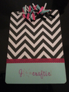 Personalized clipboards $15-18. Measures 9" wide and 12"long. The front and back of the clipboards are covered in quality scrapbook paper with coordinating ribbon and sealed with coats of mod podge as well as permanent acrylic sealer which allows papers to not stick to your board and will be water resistant and non-yellowing. Shipping is $5.00. Contact me at SWAKcrafts@gmail.com. Great for teachers, coaches, nurses, and students.