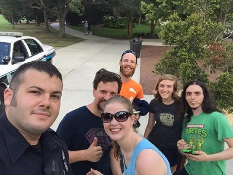 Anything that gets people outside is great, the police department acknowledged. To prove that point, Officer Andrews even posed with a group of "Pokemon trainers" on Monday.
