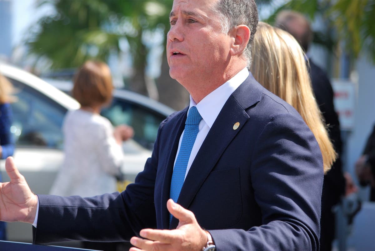 Miami Mayor Tomas Regalado pictured at a press conference in which he announced the crackdown against Airbnb. Photo by Paul Scicchitano.