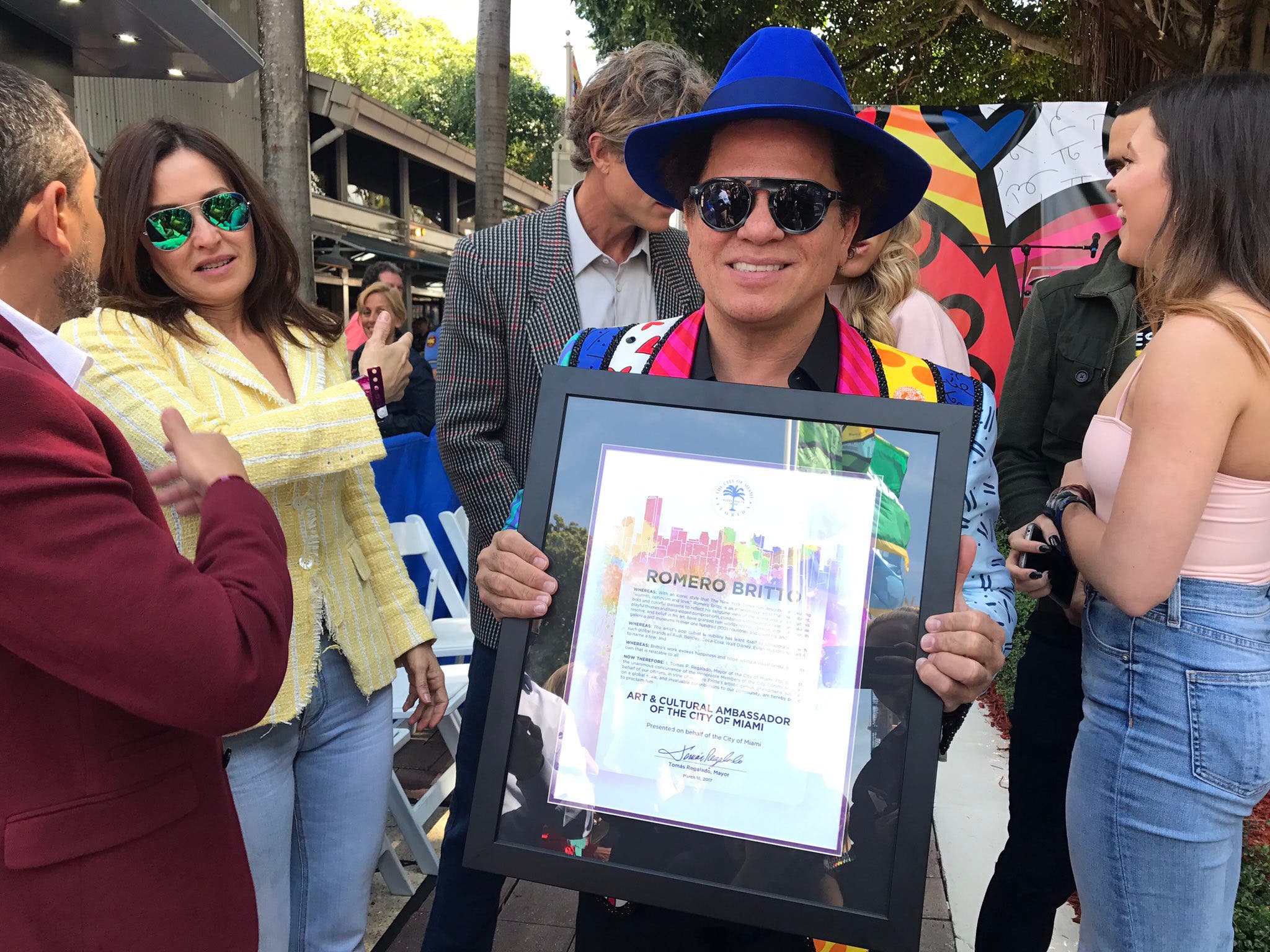 Regalado also named Britto Cultural Ambassador for the City of Miami at the ceremony that took place at the front entrance of Bayside Marketplace along the Walk of Fame. Bayside is among the city's most iconic outdoor shopping centers at 401 Biscayne Boulevard Drive.