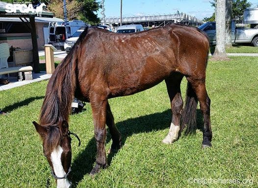 The South Florida SPCA wrote on Facebook that the horse called “Trigger” is safe and would be held for a 21-day quarantine “then we’ll see about his availability for adoption pending the case against the owner.”