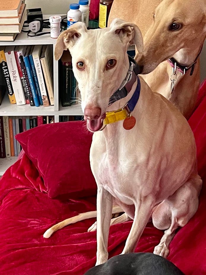 Playa, a Spanish rescue greyhound, bolted from her foster home just before Thanksgiving. She was found seven weeks later.