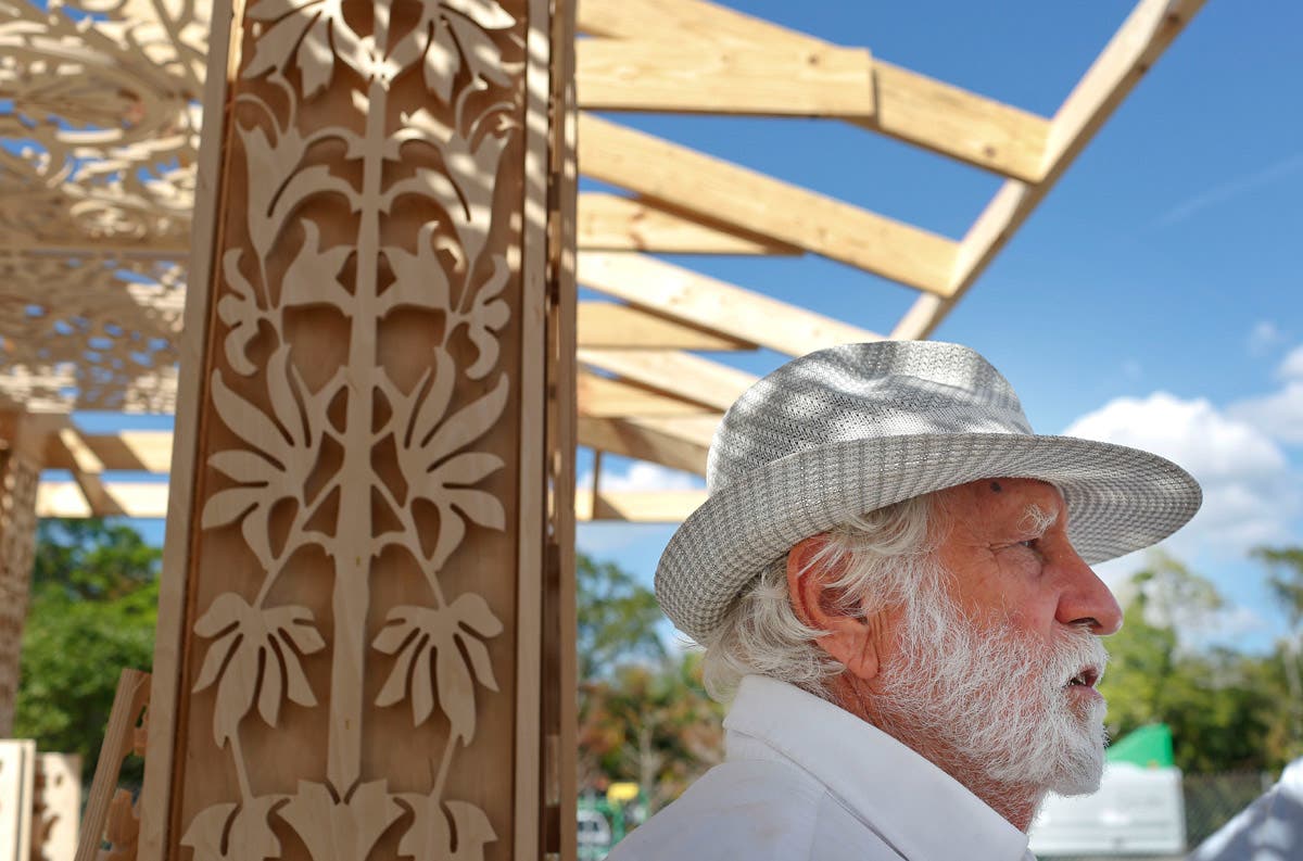 California artist David Best talks about how he is building a non-denominational, temporary temple for the anniversary of the Marjory Stoneman Douglas High School shooting massacre, on Tuesday, February 5, 2019 in Coral Springs, Florida.