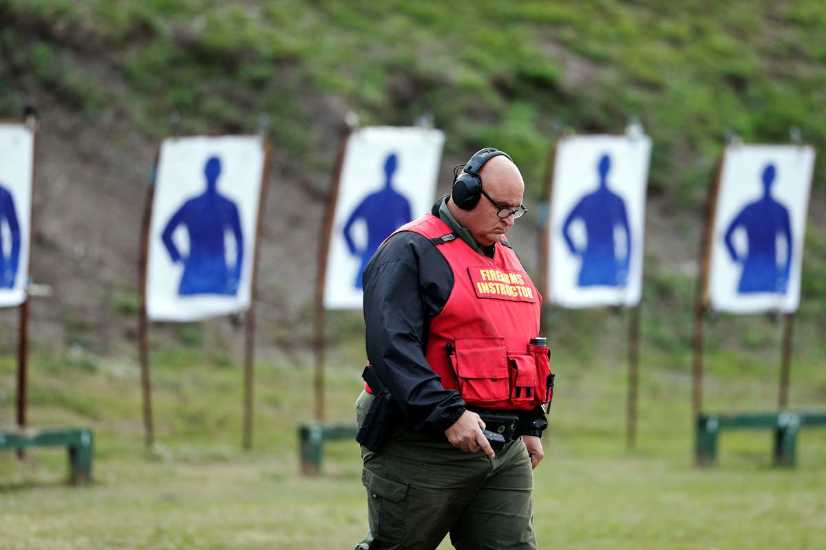 In this January 30, 2019, photo, Sgt. Michael Hazellief, training supervisor, walks on the grounds where the "guardians" are participating in a training session to respond to active shooters in Okeechobee, Florida.