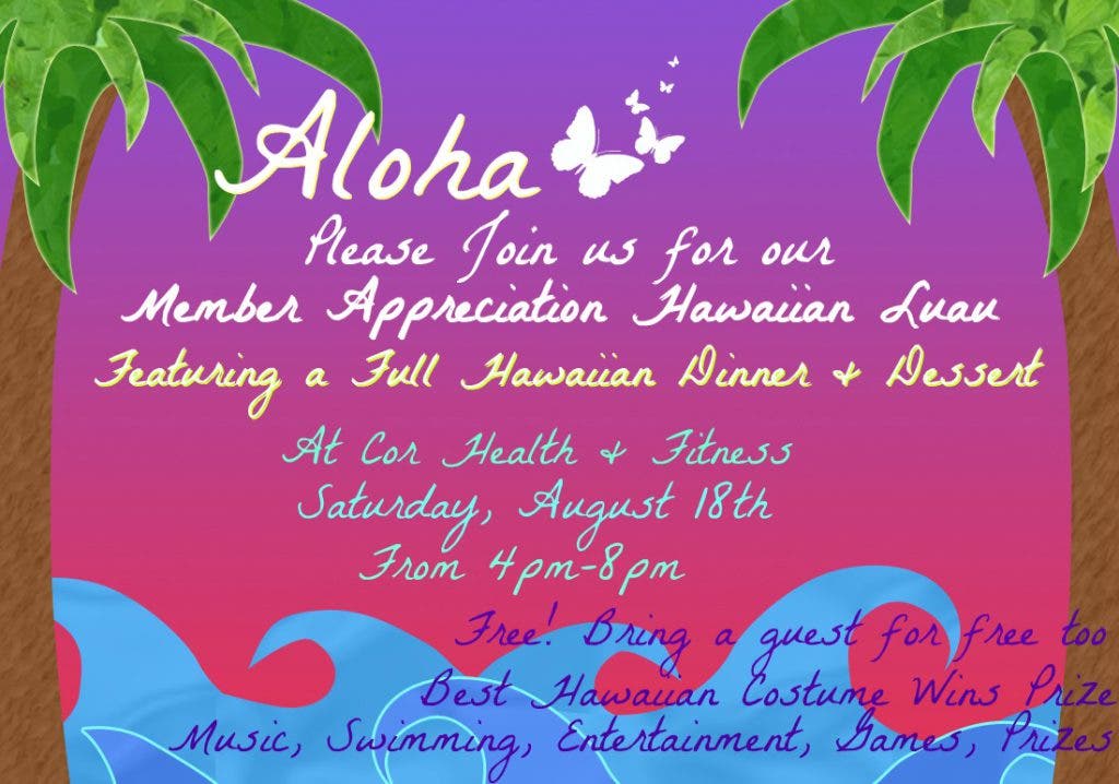 FREE FOR ALL! This Saturday, August 18th from 4pm-8pm Member Appreciation Poolside Hawaiian Luau!