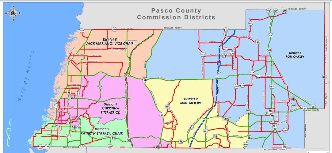 But Commissioner Mike Moore notes this issue isn't a problem in Pasco County since there are no single-member districts. Voters have the opportunity to vote for candidates for all five county commission districts.