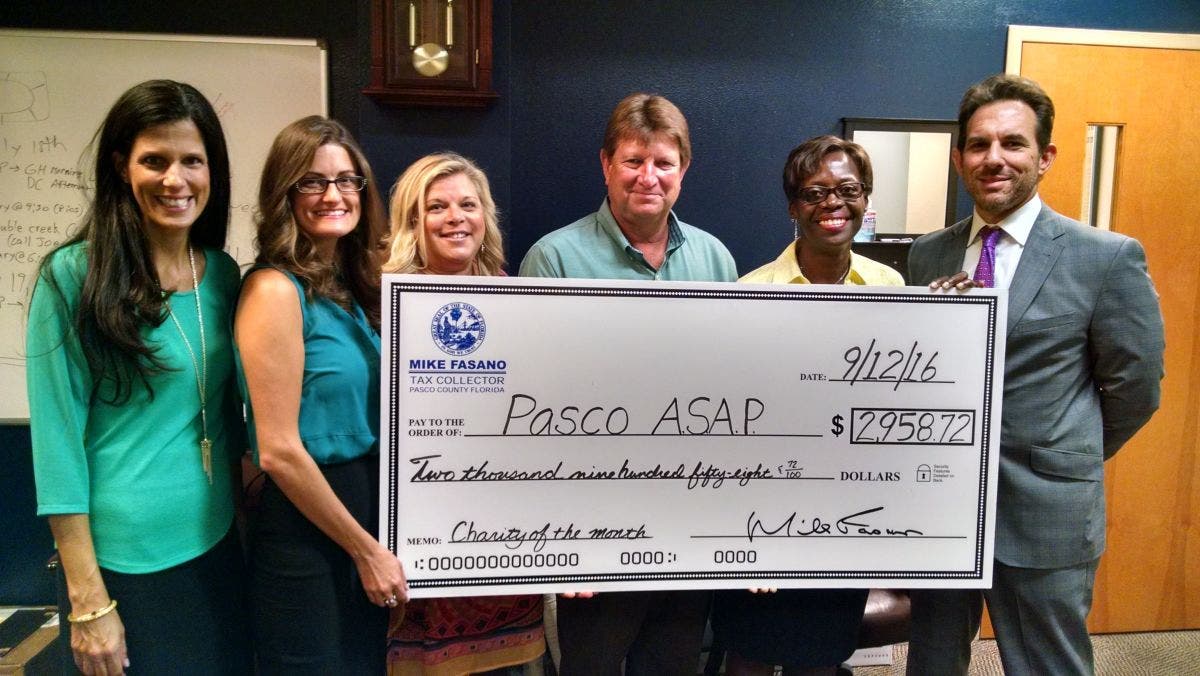 The Pasco Alliance for Substance Abuse Prevention (ASAP) was the featured charity at the Pasco County Tax Collector's Office in August