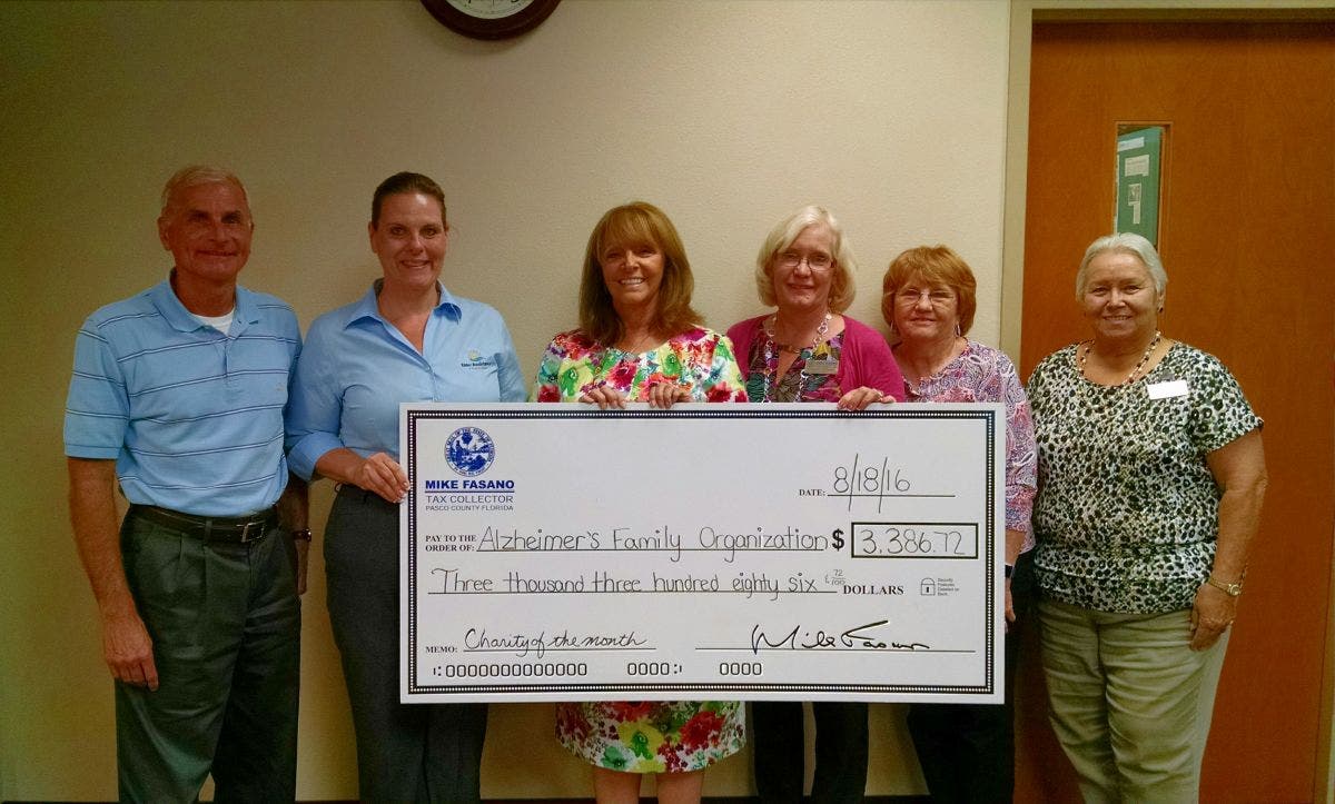 The five tax collector offices in Pasco County raised funds for the Alzheimer's Family Organization during the month of July
