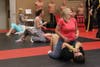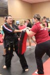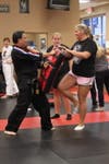 Hurtado stressed that although the last place you want to end up is on the floor, if you do, you better know how to handle it. He taught the women a way to roll an attacker that is sitting on top of them hitting them so that they have the advantage.