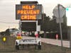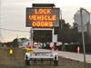 Signs along Alt. 19 in Palm Harbor warn people to protect themselves from becoming crime victims by locking their vehicle's doors and report any suspicious activity.