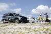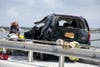 The deputy turned on his cruiser's flashing lights and once he made it onto the bridge he sawΒ the suspect's car rear-ended a 2006 GMC Envoy, which caused it to spin around and flip onto the hood of a Dodge Journey in the eastbound lane, Barreda said.