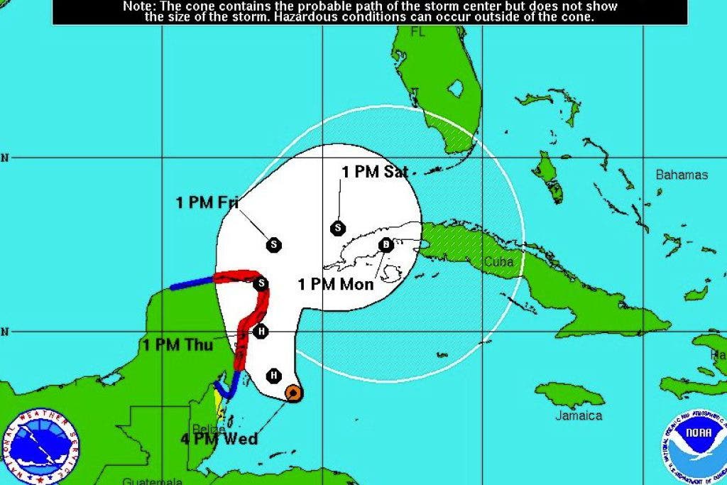 The latest maps from the National Hurricane Center on Wednesday morning placed Bradenton and Sarasota just within the storm's "cone of uncertainty" as it is expected to move over the western Caribbean toward Cuba and South Florida this weekend.