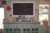 LuLu's features a casual, outdoor dining area shaded by a large tree. There is also plenty of dining inside. Much of the furniture inside is handcrafted from reclaimed wood and is for sale. The restaurant is decorated with other handcrafted items that are also for sale including jewelry, scarves, Christmas ornaments and baby clothing.
