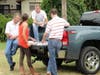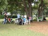 Last week's three-hour long rally saw a steady stream of customers who ordered from the trucks and then joined friends and family to dine together at picnic tables. Some people even used the bed of a pickup truck as a dining spot.