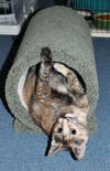 She's also a little "Houdini" kitty, who's so smart that we had to add a little extra security to her house to avoid having her let herself out to visit with everyone at will.