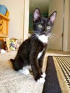 1) This is Frankie! He's an adorable kitten with an entire white chin which is the only way we can tell him apart from his brother, Puppet! Frankie is very playful with his brother and is getting used to the dogs in the house. He is the most independent of the kittens in his litter, and he really enjoys watching the squirrels just on the other side of the sliding doors.