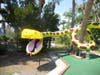 The tall standing Easter Island Tiki and yellow coiled concrete snake were recently repaired by the original creator, Jerry Truesch, who came to surprise Polynesian Putter.