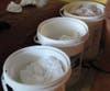 Outside, on the side of the house, is a rinsing table. The material gets a thorough soaking, before they are washed twice, to get rid of all excess dye, and then dried in high heat.