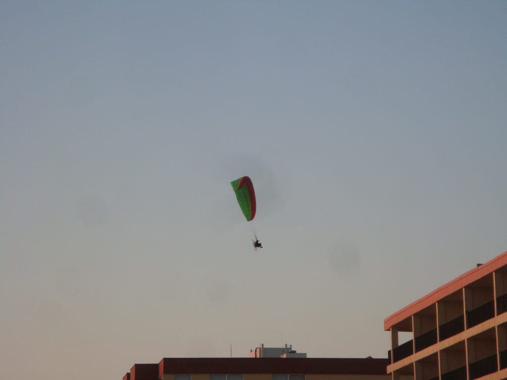 A man with a powered parachute glided above Clearwater Beach Sunday which is a violation of a city ordinance.